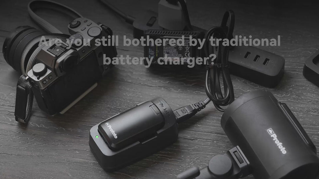Battery Charger can recharge Profoto A1, A1X, A10 and A2’s Lithium-Ion battery. It supports USB-C QC charging.